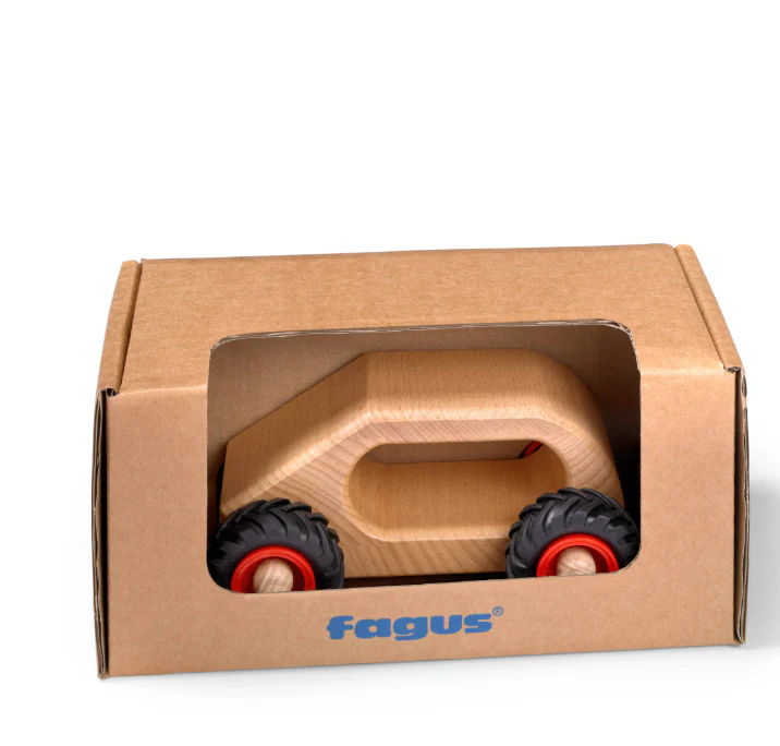 An ideal gift for a baby's birth or birthday. Thanks to the lacquered surface, the Knubbel-Auto ''Van'' feels pleasant to the touch and is easy to grip.