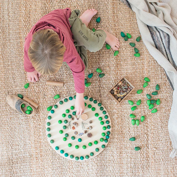 A beautiful wooden material without instructions, children will find open-ended and autonomous play with these 36 green tree shapes.