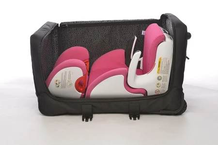 Weelee™ is Clek's universal travel bag designed to protect your car seat from damage while traveling. With two rugged wheels, a telescoping handle, luggage ID tag, thick layers of padding for optimal protection, plus a little extra room to stow extra vacation essentials. When not in use the bag folds flat for easy storage.